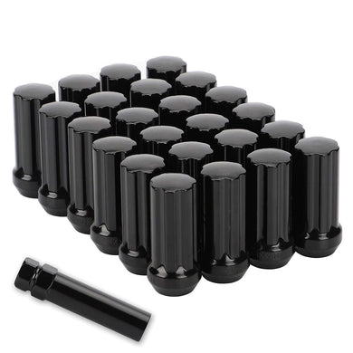 24-Piece Set | 1.78” Tall | Black | 14x2 Thread | 3/4” Hex Drive | Bulge Acorn | Wheel Lug Nuts